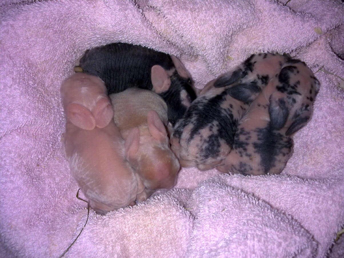 Zenas Wurf A; Nestbild Hier sind sie 3 Tage alt, die Zeichnung ist schon recht gut zu sehen;)