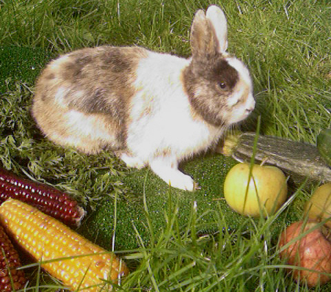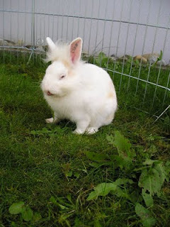 Ein furchtbar aufgeweckter Hase, errinert mich ein bisschen an Pepper, er springt die ganze Zeit hin und her hin und her, wenn du vor dem Stall stehst:) Aber er ist sehr zutraulich und streckt dir seinen Kopf immer richtig hin und schiebt sie unter deine Hand:))